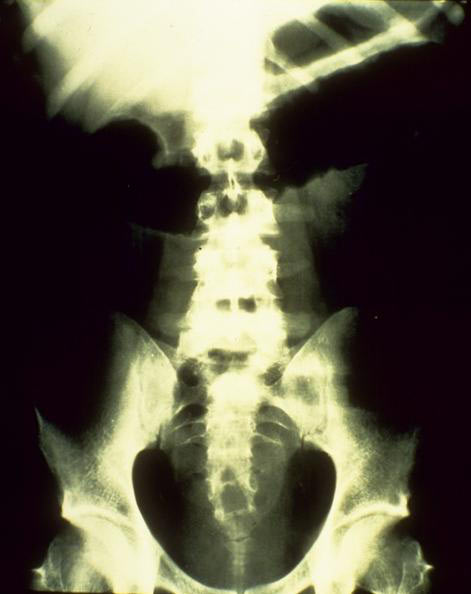 das toxische Megacolon (=vor einer entzündlichen Verschwellung der Darmlichtung im S-Darm oder an der haarnadelförmigen linken Flexur kommt es zu einer Stauung des Darminhaltes mit massiver Aufweitung der Darmschlinge: in schweren Fällen platzt (perforiert) der Darm und es bildet sich eine gefährliche Bauchhöhlenentzündung); » A45